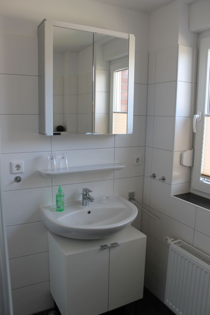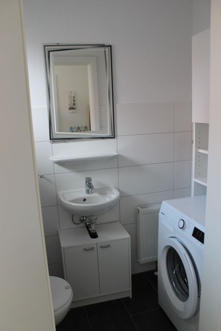 Unmittelbar angrenzend befindet sich das Gäste-WC. Hier ist auch eine Waschmaschine untergebracht, die zur kostenlosen Nutzung verfügbar ist.