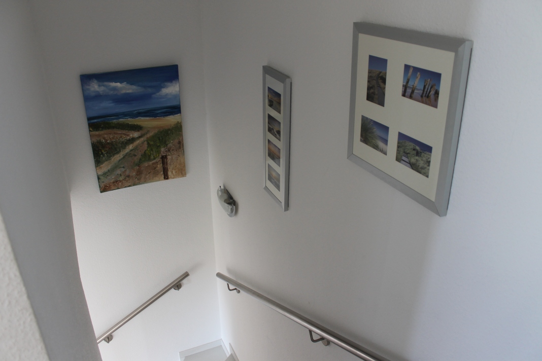 Über den lichtdurchfluteten Treppenaufgang gelangen Sie in das 1. Obergeschoss. Sind Sie oben angelangt, fällt der direkte Blick in das