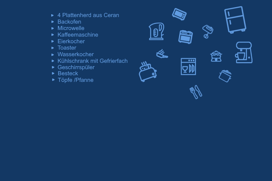 ist alles vorhanden. Im Abstellraum befinden sich ein Bügelbrett mit Bügeleisen und ein Staubsauger. Die Auflistung finden Sie im Inventarverzeichnis.