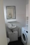 Unmittelbar angrenzend befindet sich das Gäste-WC. Hier ist auch eine Waschmaschine untergebracht, die zur kostenlosen Nutzung verfügbar ist.