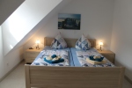 Links vom Treppenaufgang ist das Elternschlafzimmer. Hier befindet sich ein zusätzliches Kinderbett, das kostenfrei für ein Kind bis zu einem Alter von